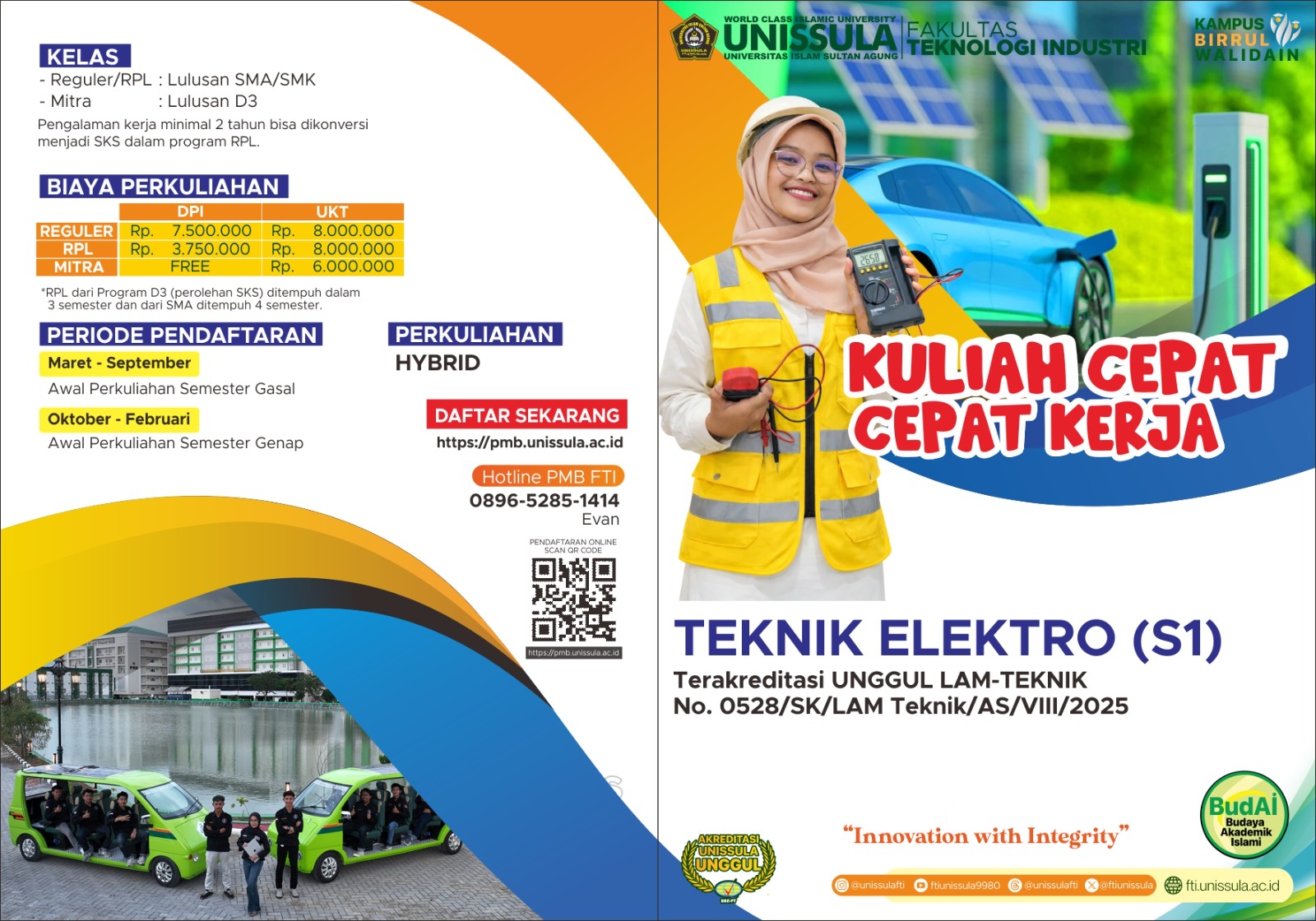 “Saya sangat bersyukur memilih S1 Teknik Elektro FTI UNISSULA karena dosen profesional, kurikulum relevan, serta pengalaman praktik yang menunjang karier saya di PLN. Bekal tersebut mendorong saya melanjutkan S2 di MTE UNISSULA.”